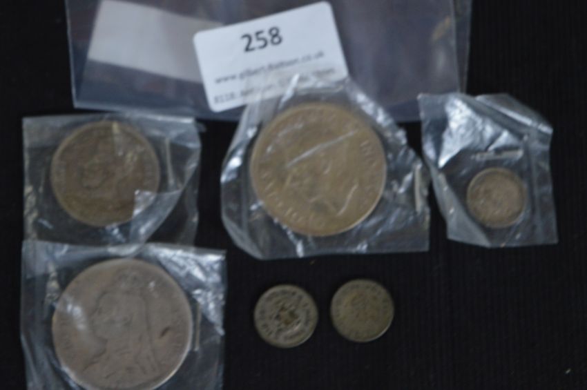 Silver Coinage Victorian Crown 1889, Canada Dollar 1926, Australian 1927 and Three Silver Threepences