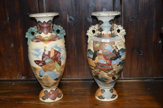 Pair of Large Japanese Vases Featuring Samurai Warriors