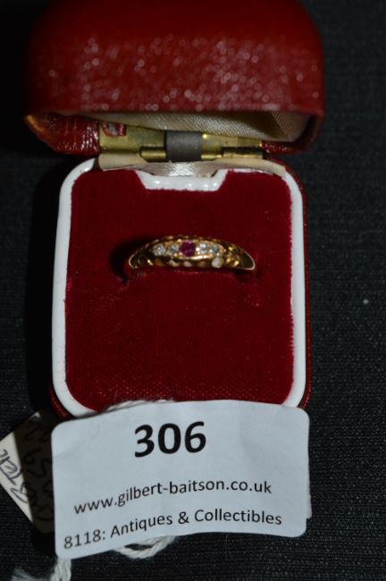 18ct Gold Diamond & Ruby Dress Ring Size: N - Chester 1901