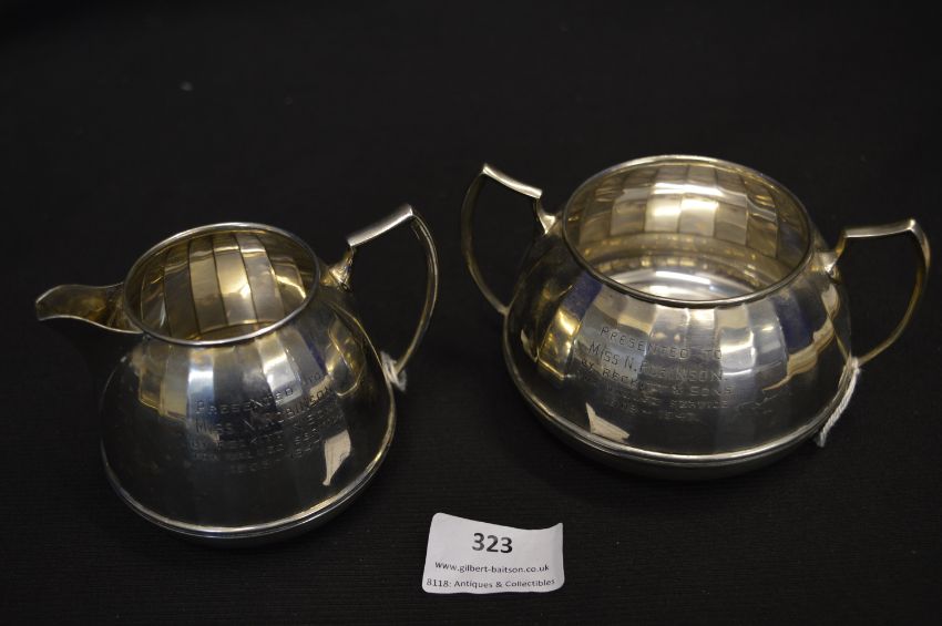 Art Deco Silver Cream Jug and Sugar Bowl - Birmingham 1947, ~260g