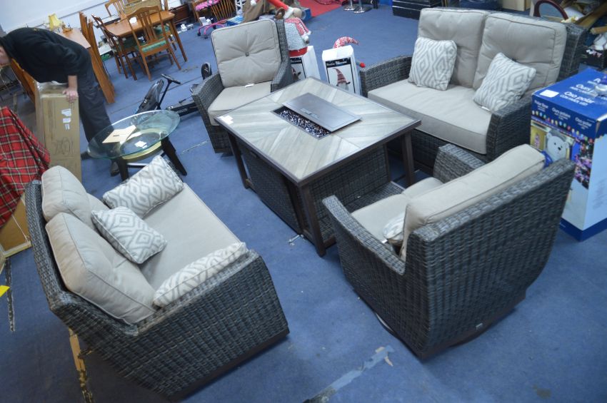 *St Louis 5pc Woven Patio Set; Two Sofas, Two Chairs and a Table with Integrated Fire Heater