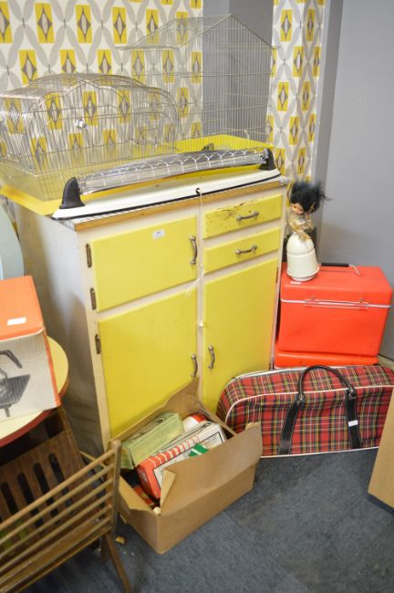 Vintage Yellow Formica Topped Kitchen Cupboard, Budgerigar Cages, Coal Boxes, etc.