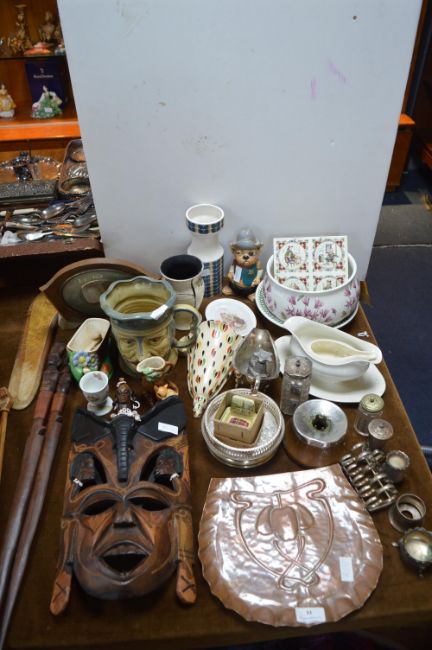 Decorative Items Including Wall Mask, Art Nouveau Copper Dish, Cartridges, etc.