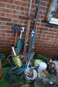 Assorted Garden Tools, Planters, Pots, etc.