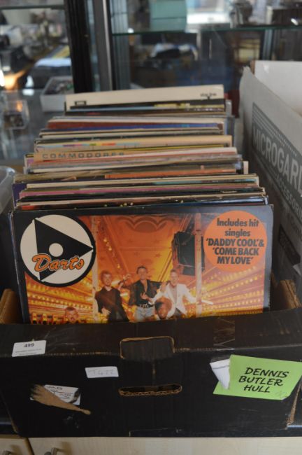 Box Containing 70+ LP Records Including Darts, Al Green, Shirley Bassey, The Commodores, etc.