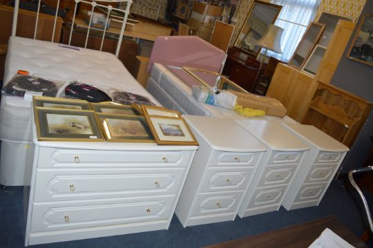 Four Sets of Cream Bedroom Drawers with Frosted Glass & Brass Handles in White Painted Finish