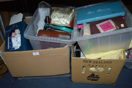 Two Tubs of Household Goods, Stationery Set, Decorative Ceramics, Handbags, etc.