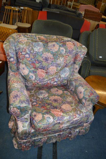 Floral Upholstered Three Seat Settee and Matching Easy Chair