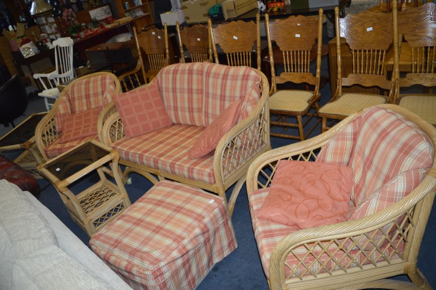 Bamboo Conservatory Suite; Two Seat Sofa, Two Armchairs, Side Table, Coffee Table and Pouffe