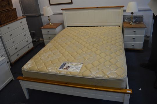 CReam Painted Pine Double Bed with King Koil Orthopedic Mattress
