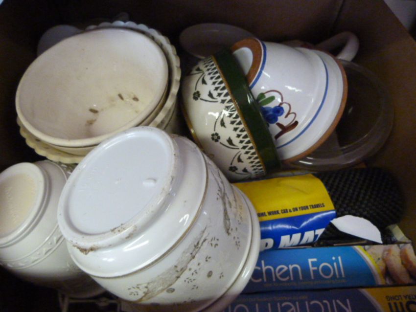 Box of Pottery Kitchenware, etc.