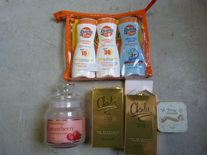 *Sun Tan Lotion, Charlie Gold and Two Scented Candles