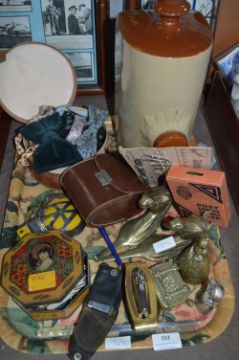 Tray Lot of Collectibles Including Costume Jewellery, Bow Ties, Decorative Brassware, etc.