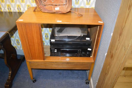 Retro Teak Hi Fi Cabinet with Kenwood and Sherwood Hi Fi