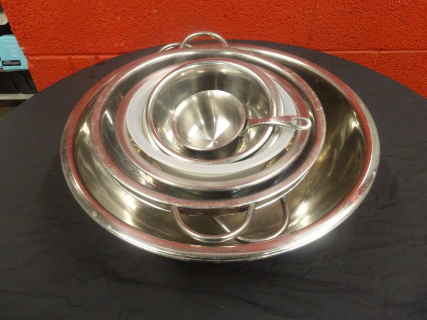 * Set of 9 stainless steel containers / sieves & 1 plastic container. All in excellent condition