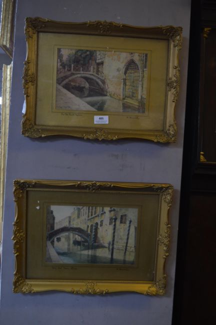 Pair of Gilt Framed Period Print - Venice Canals by S. Raymond
