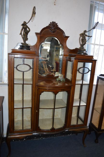 Edwardian Mahogany Inlaid Bow Fronted China Cabinet on Cabriole Legs