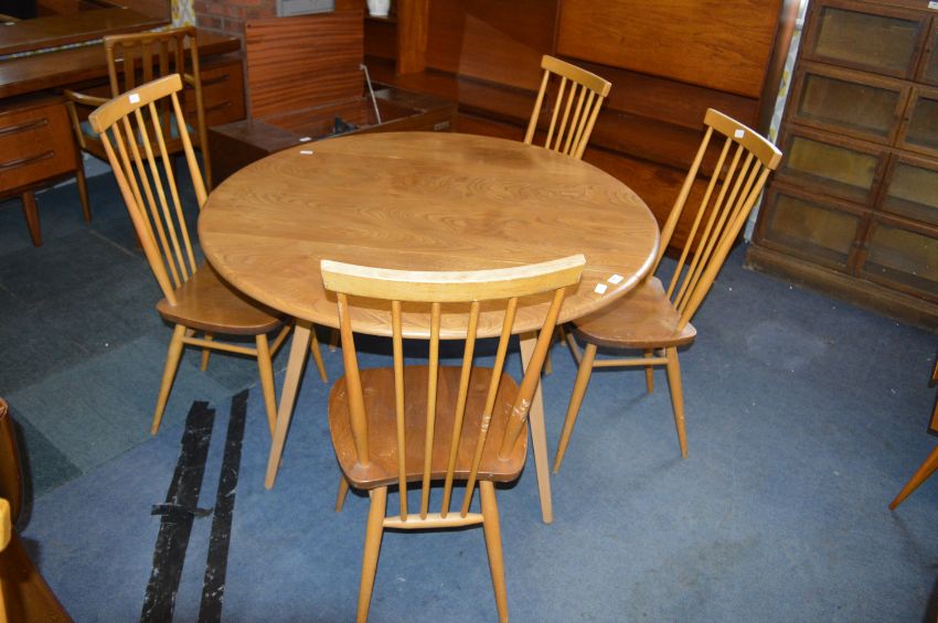 Ercol Elm Oval Drop Leaf Dining Table with Four Spindle Back Chairs