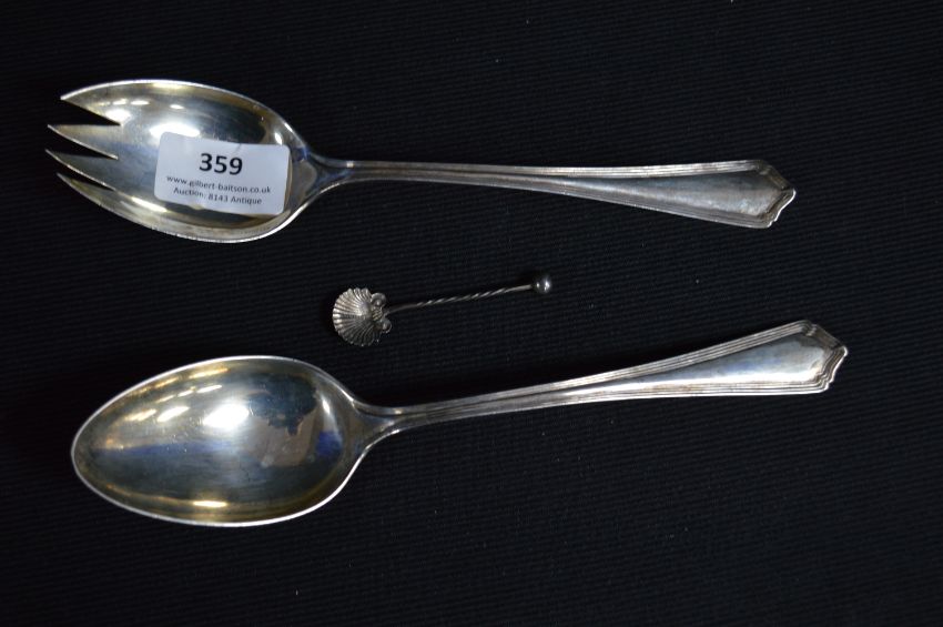 Pair of Silver Salad Spoons and an Oyster Shell Spoon - Birmingham, ~130g total