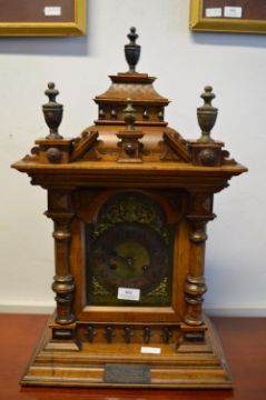 A Selection of Clocks including French Ormolu Domed Clock, English Walnut Wall clock, C. Fox Beverley 30 Day Longcase Enamelled Face Clock, 30 Day Grandfather with Oil Painted Maritime Face, Brass Faced Longcase Clock.