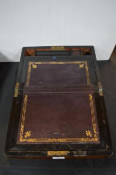 Victorian Walnut Writing Slope with Brass Inlay and Tooled Leather Interior