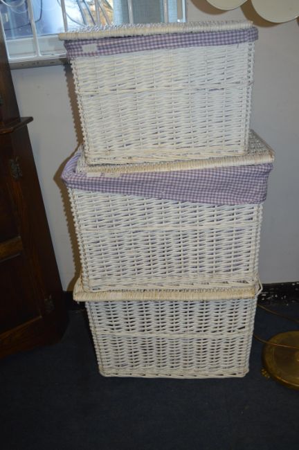 Three White Wicker Baskets