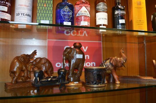 Carved Wooden Elephants, Figures, Bookends, etc.