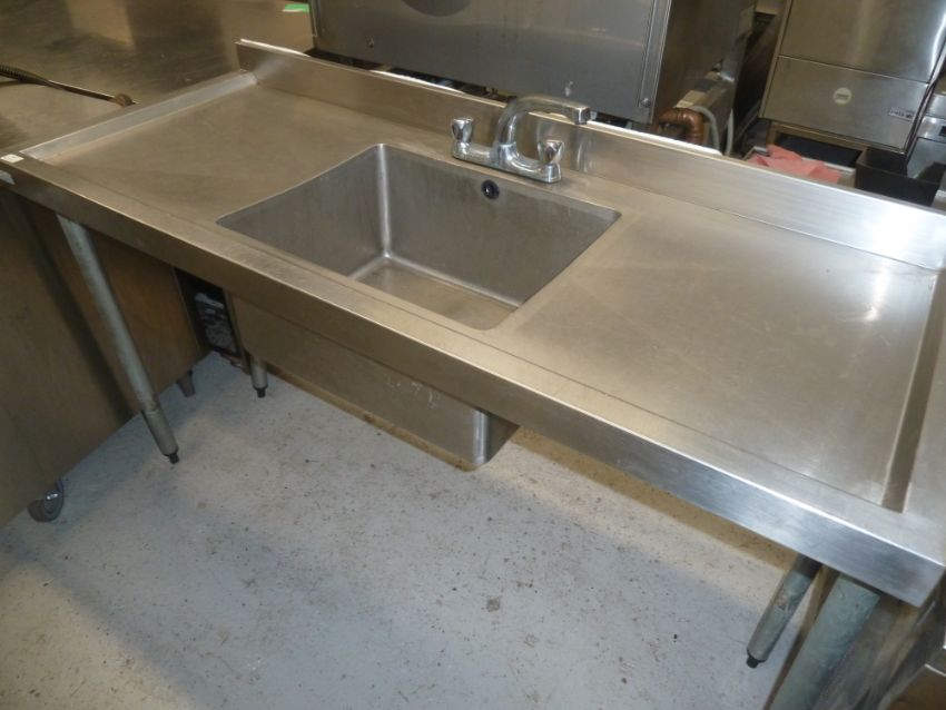 * St Steel single wash basin, good condition, complete with legs. (920H x 1500W x 600D)