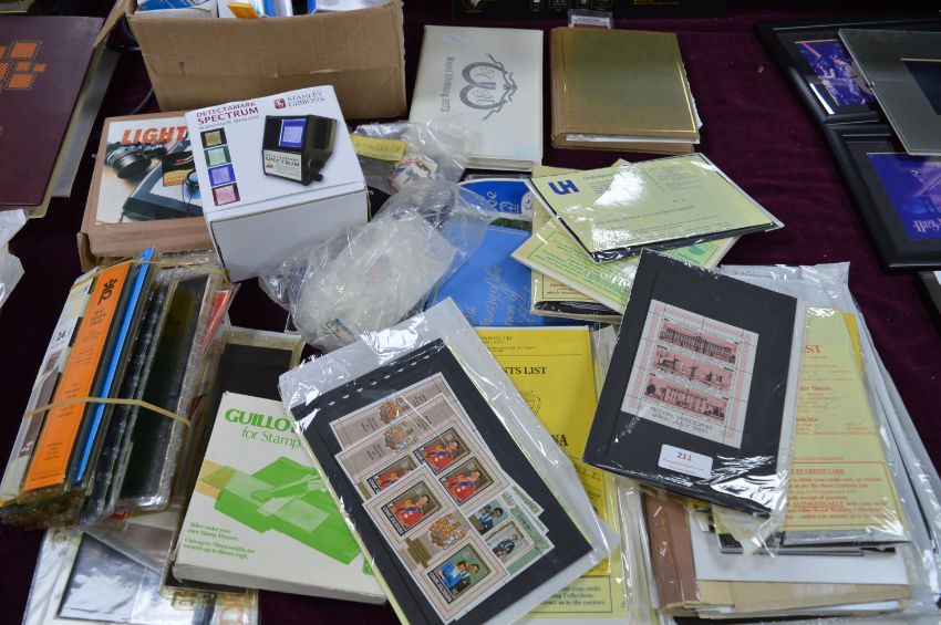 Assorted Stamps and Stamp Collecting Accessories, Watermark Detector, etc.