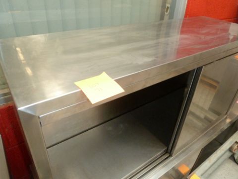 * St Steel wall cabinet, shelving good condition. (600H x 1200W x 400D)