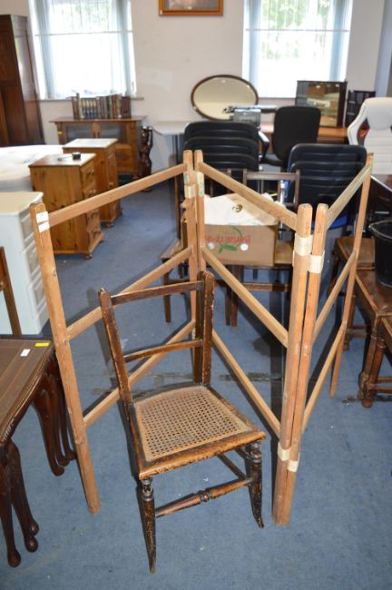 Vintage Three Section Folding Pine Clothes Horse and a Berge Seated Chair
