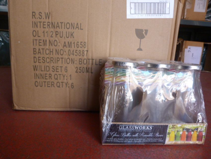 *Six Sets of 6 Glassworks Bottles with LIds & Straws