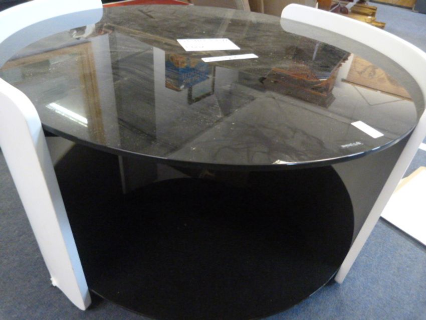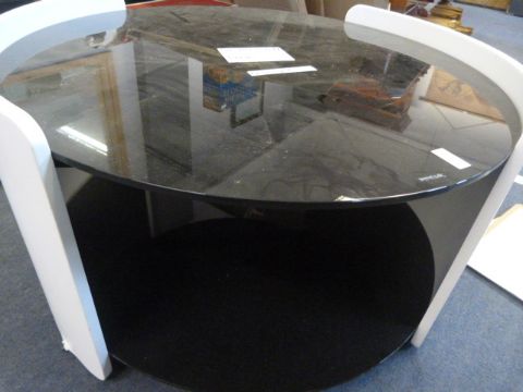 *Round Coffee Table with Black Glass Top in Pure White