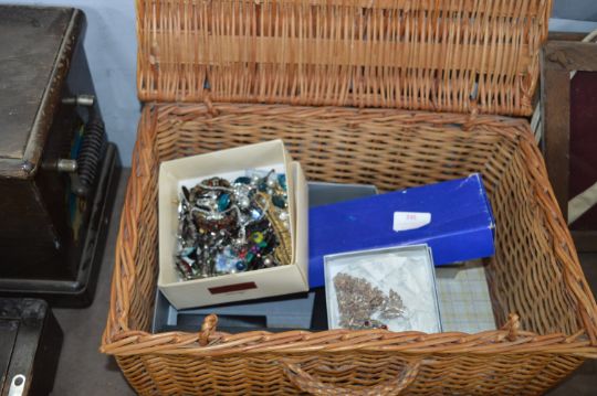 Picnic Basket Containing Costume Jewellery