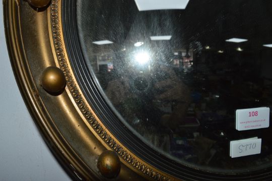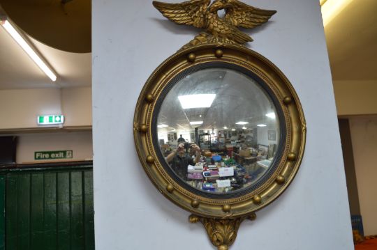 Circular Gilt Framed Convex Wall Mirror with Eagle Figure