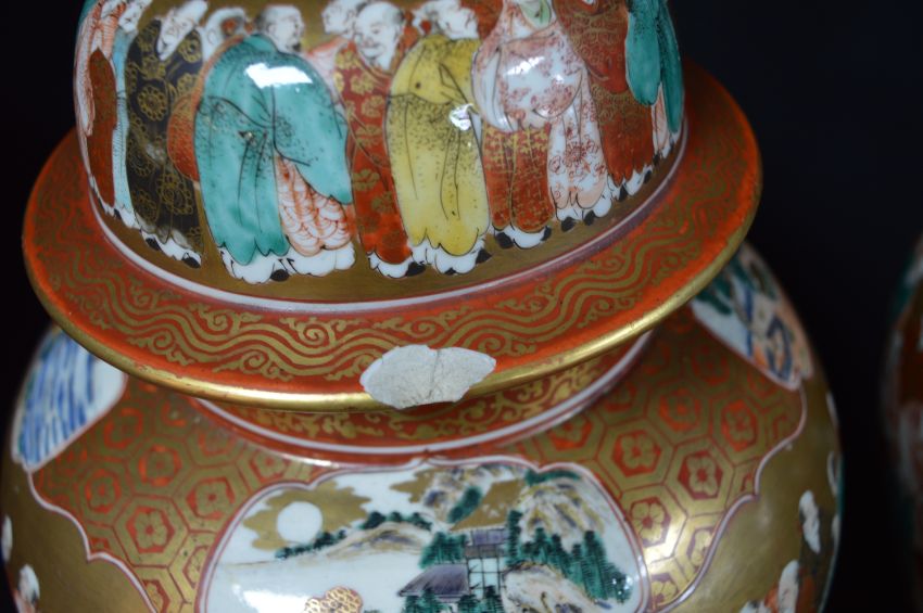 Pair of Large Oriental Ginger Jars 14" Tall (Faults to one lid)