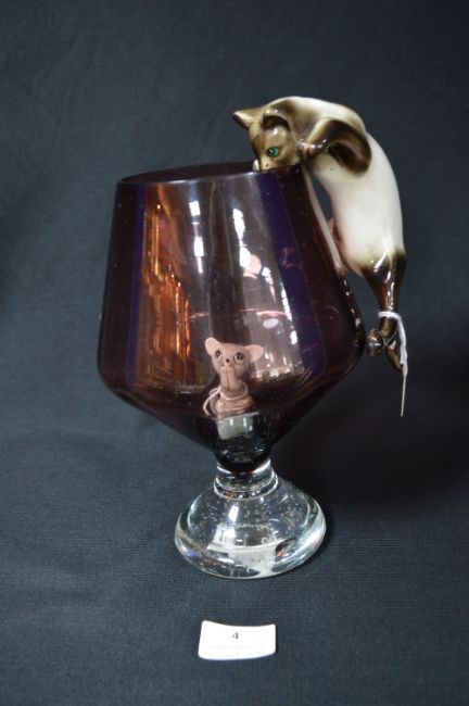 Beswick Siamese Climbing Cat in a Brandt Glass