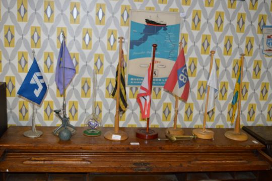 Seven Shipping Line Miniature Flags plus Brass Anchor, etc.