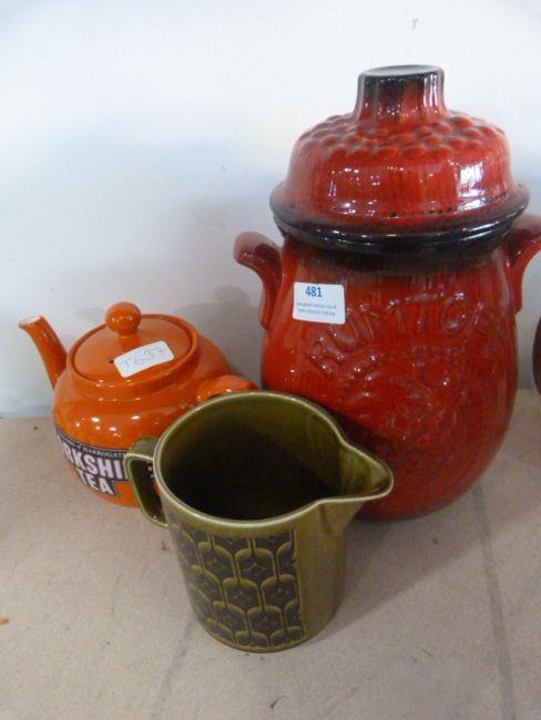 Rumtopf Jar, Yorkshire Tea Teapot and a Hornsea Jug