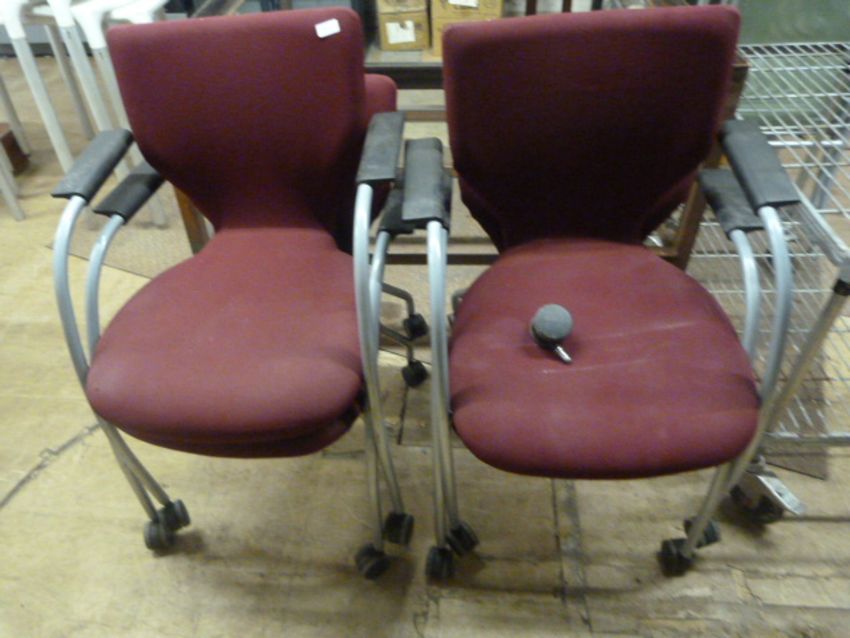 Four Upholstered Chairs on Wheels