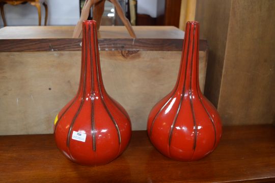 Two Red Gourd Shaped Vases