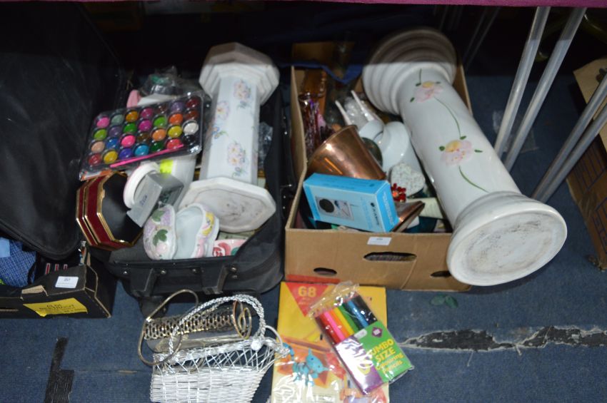 Box and a Case of Household Goods; Vases, Toys, etc.