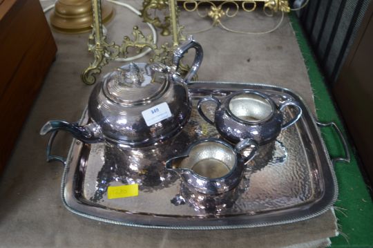 Pewter Tea Set; Tray, Teapot, Sugar Bowl & Cream Jug