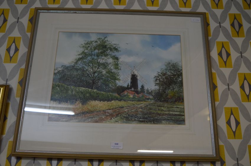 Signed & Framed Watercolour of Skidby Mill by J. Barry Whiting