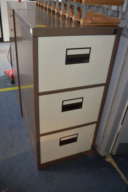 Brown & Cream Three Drawer Metal Filing Cabinet