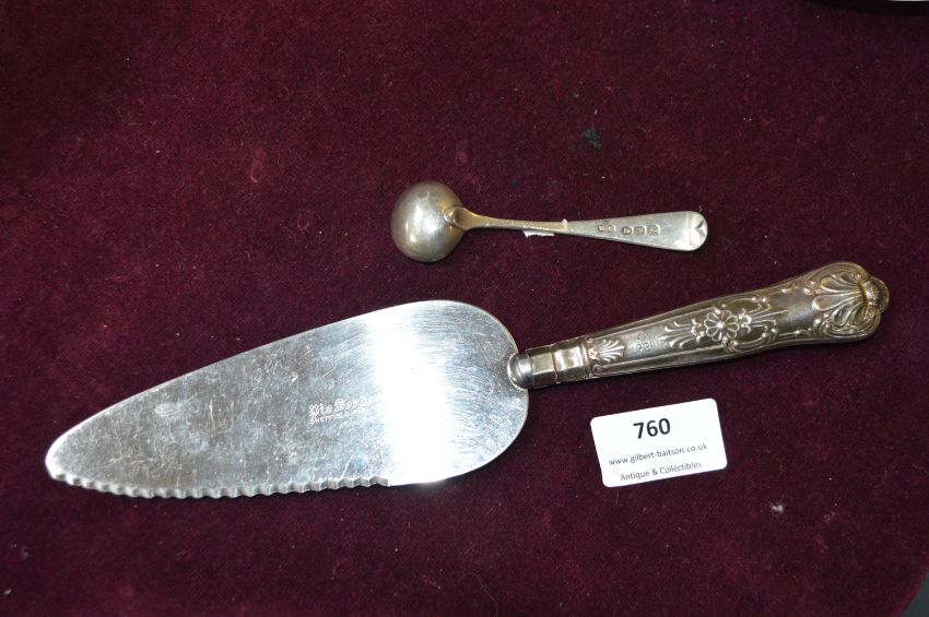 Hallmarked Sterling Silver Handled Cake Server plus Spoon