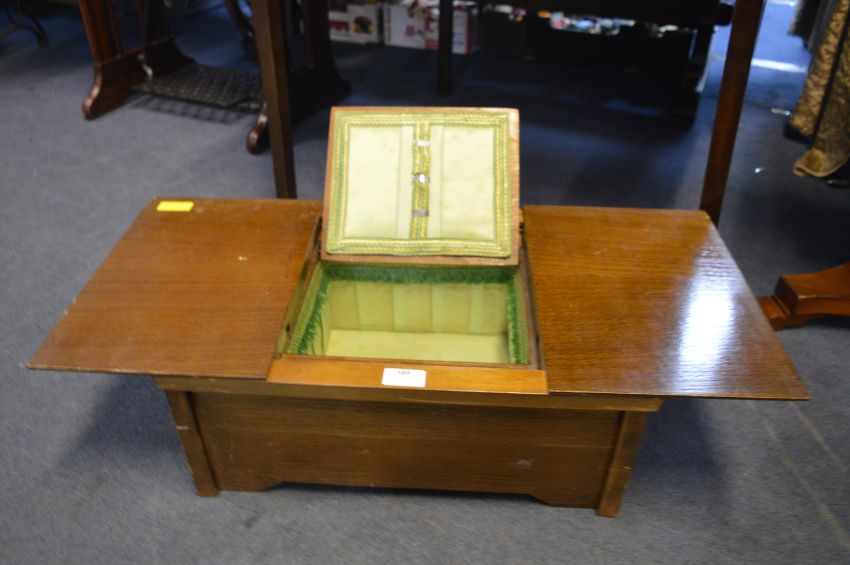 1950's Oak Sewing Box with Green Silk Interior