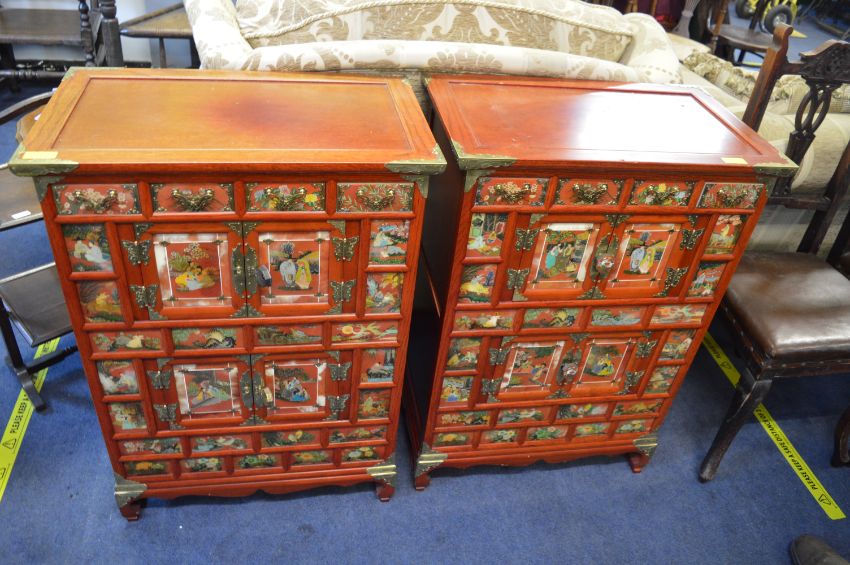 Pair of Modern Reproduction Red Lacquered Chinese Cabinets