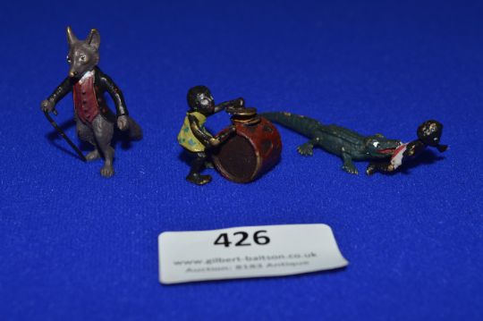 Three Miniature Gold Painted Bronzes; The Fox, Crocodile, etc.