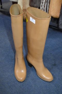 Pair of 1970's Ladies Italian Light Tan Boots by Rontani Size: 5